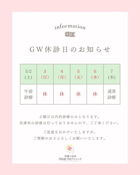 5月2日(土)は内科のみ診療